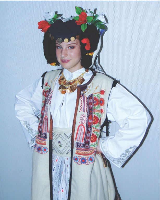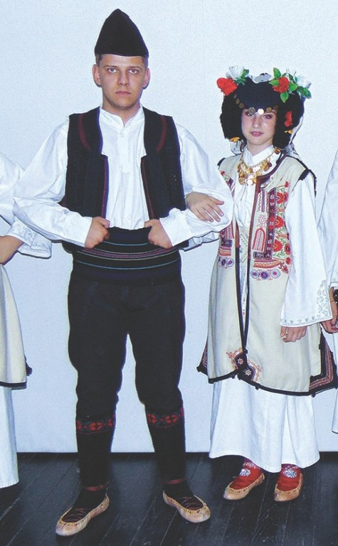 The shirt worn only on the wedding day – the wedding shirt is called 'đurđevajka'. These shirts were decorated on the upper side of the sleeves and on the back, above the hem of the shirt. The embroidery on the back was called 'provoz.' The motifs in the embroidery on the shirt represent crosses, rhombuses, hooks, stylized flowers, triangles, and other geometric shapes. The shirts were named after the places where the patterns were created or after the pattern that was embroidered on them (lipjanka, skulanka, lozana, zmijana, kukana, krstanka). In addition to dark red, purple, green, dark blue, and black wool, metallic thread, yellow or white gold, as well as sequins were used in the embroidery. The sleeves were edged with narrow linen or cotton lace 'kombe.' Tassels made of multicolored beads were sewn onto the embroidered sleeves of the wedding shirts. In the first decades of the 20th century, embroidery on shirts gained new visual properties – only gold thread was used in the embroidery, and the patterns were mainly stylized flowers.