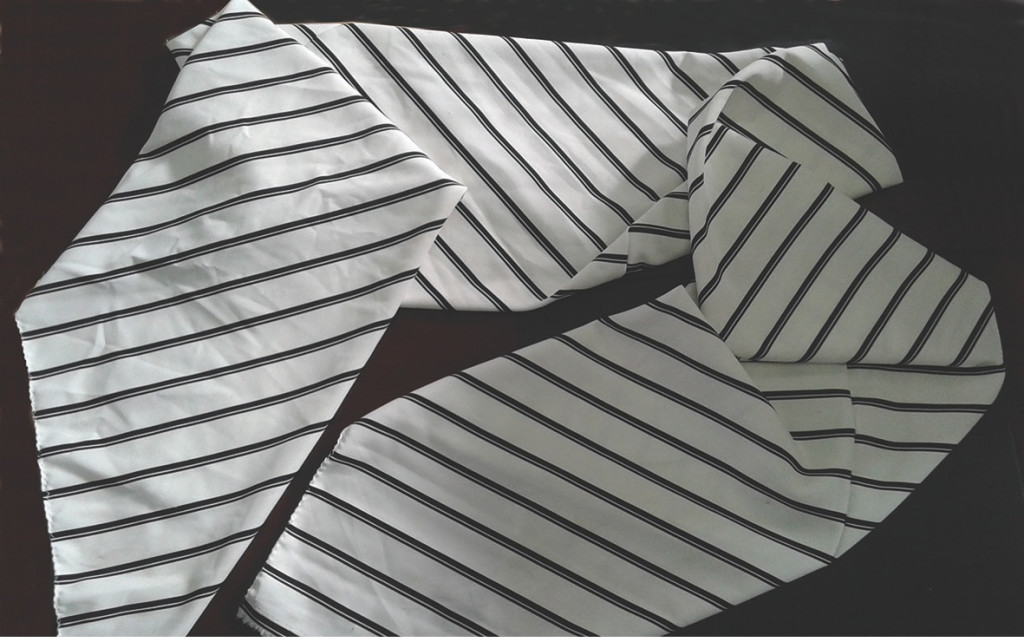 Cotton – Silk. Woven with transverse stripes of black silk thread.