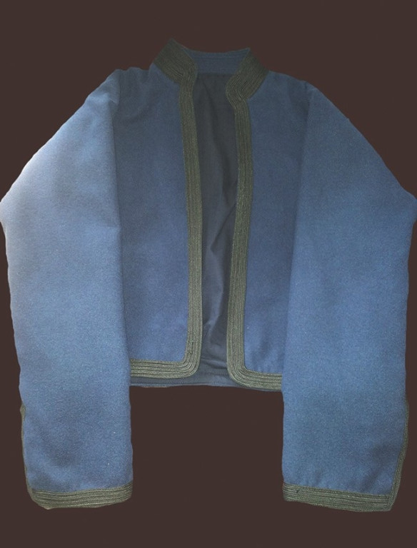 Mintan Kosovska Mitrovica Decorated with stylized geometric motifs in gold metal thread. Braided cords along the edges, buttons made of metal thread.