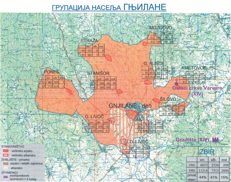 Око десет хиљада Срба у гњиланској општини и даље опстаје, упркос притисцима албанског становништва и власти да се иселе, и то у селима Шилово, Будрига, Беривојце, Пасјане и Ропотово.