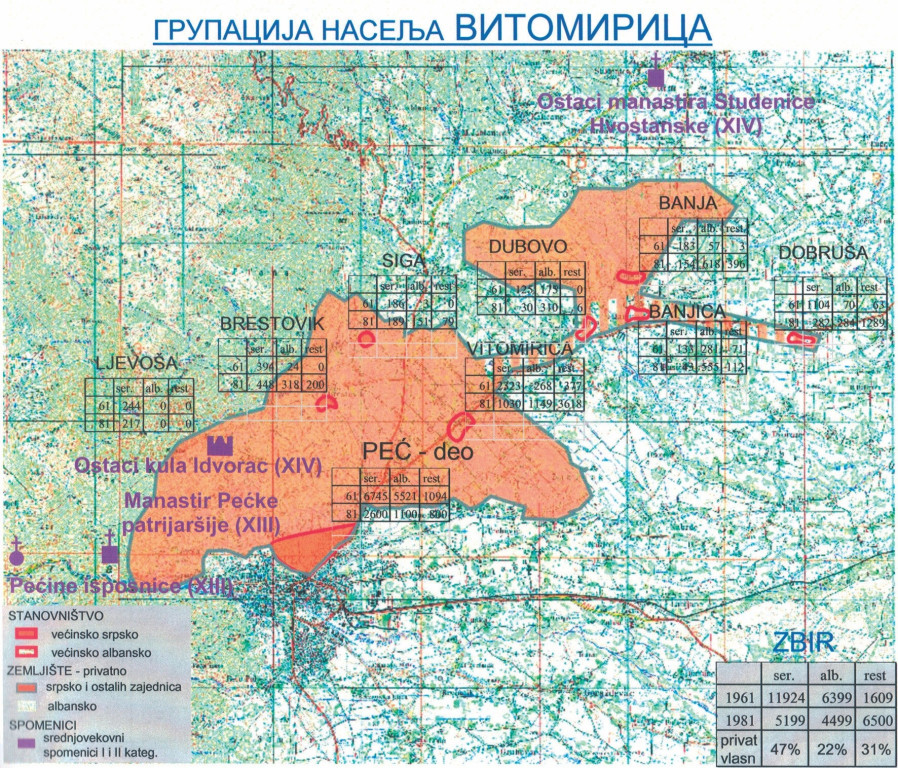 Становништво се бавило и свиларством и земљорадњом. најважнији пољски производи били су воће и дуван. По Милеру и Јукић помиње Пећ са 12000 становника. Иако је Пећ у турско време била позната варош, ипак, према њеној величини, трговина се није могла развити због познате, велике и опште несигурности од Арбанаса овог краја „где су сви били јавни хајдуци“. Трговачки друмови су тада такође били опасни. Још у време Буеа требало је од Пећи до Скадра четири дана опасног путовања, што је илустративно, јер се раније тај пут прелазио за 16 сати.