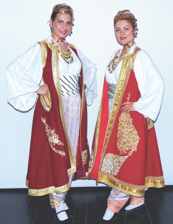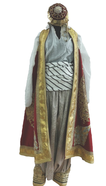 Џубе - Косовска Митровица црвена чоха, крашена везеним стилизованим геометријским и цветним мотивима од златне и сребрне срме, поткићено ширитима. Гајтани по ивицама. Подстава од памучног платна.
