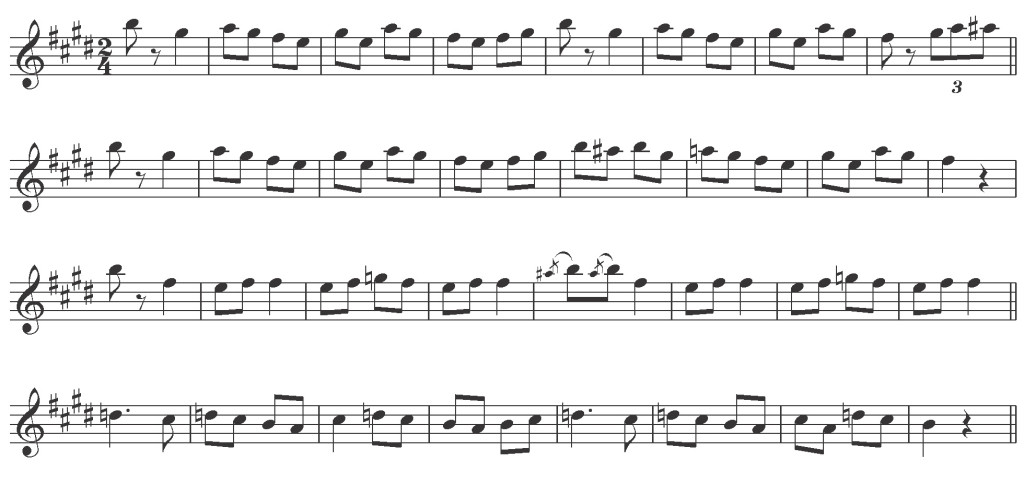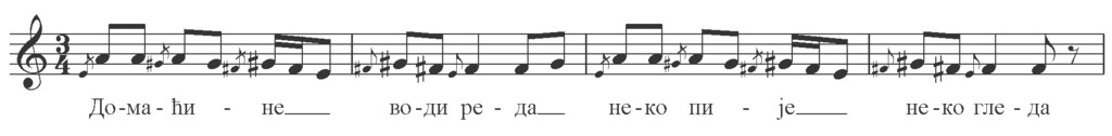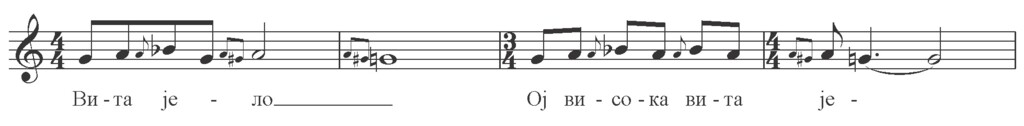 Наредна два примера представљају записе фолклорних мелодија са простора Лепосавића, у којима се могу сагледати претходно побројане карактеристике.